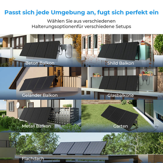 800W Balkonkraftwerk Sunshare mit 2kWh Speicher (4 x 200w Module + wählbare Speicherkapazität 2kWh - 6,1kWh)