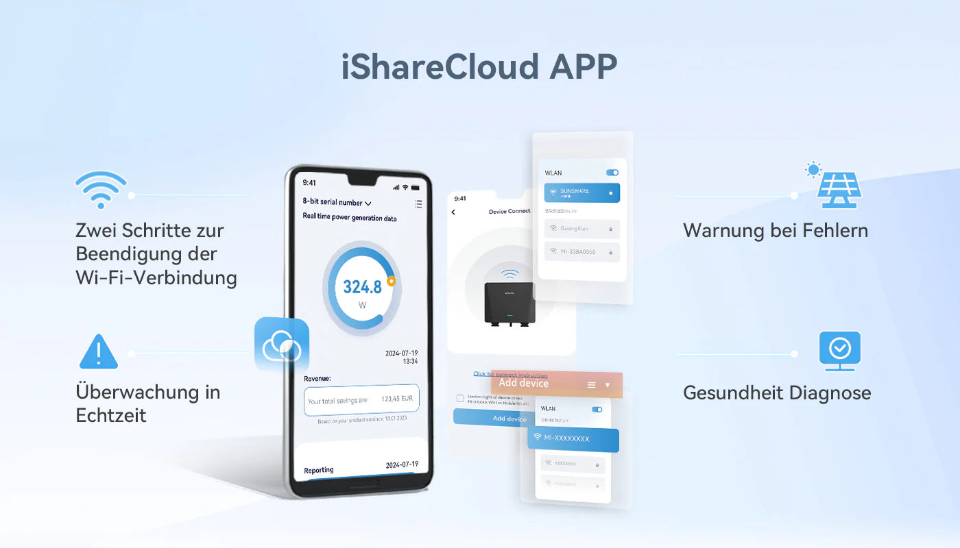 Über die iShareCloud-App kann das Mobiltelefon die Stromerzeugung einfach überwachen.