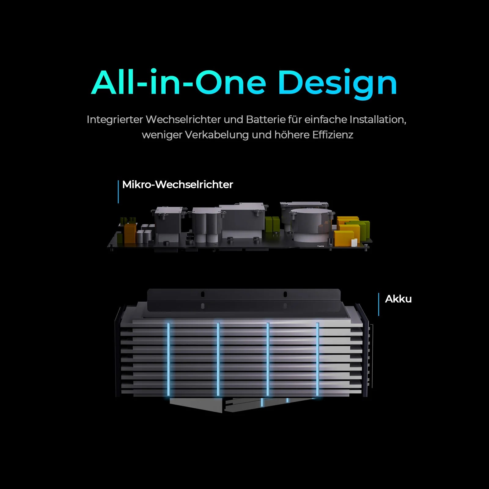 - Max. 3200 W PV-Eingang; intelligentes Dual-MPPT-System (800 W AC + 2400 W DC)